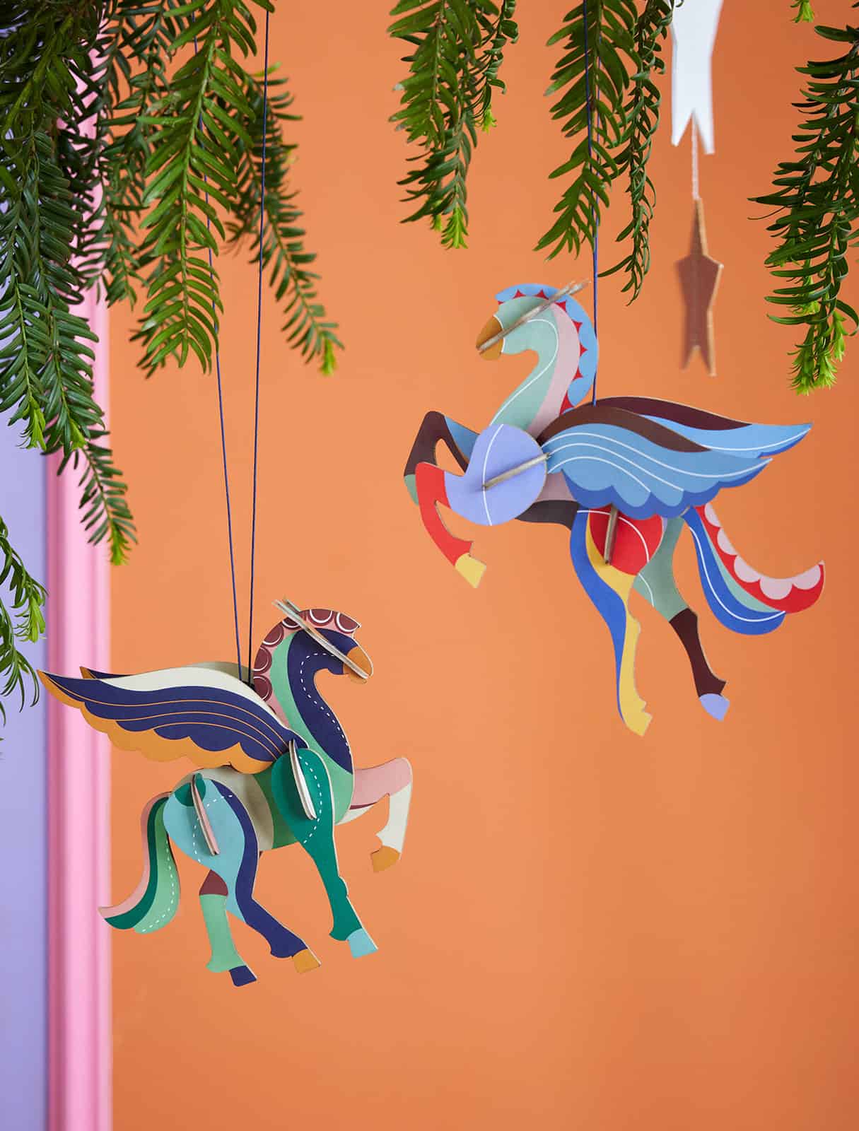 Pegasus decorativos para pendurar 14,95 € Desconto de %. IVA incluído. Partilhar Comprar Contactar 2 Pegasus de papelão para decorar Monte como um puzzle e pendure na arvore Add magic to your tree with these fun and festive decorations! Marca Studio ROOF Tags decoraçãowall art