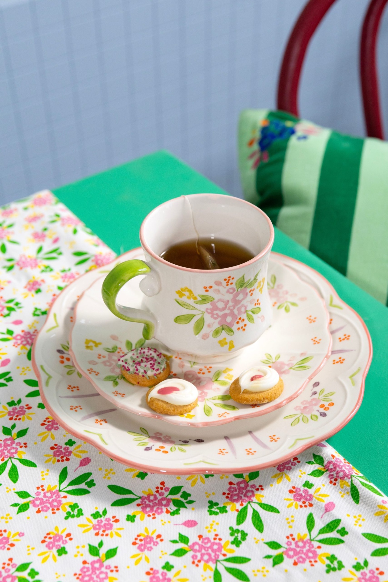 The Mercado de Flores collection is inspired by the vibrant flower markets of Latin America and combines retro design with authentic patterns. Kitsch Kitchen brings a mix of colorful floral prints and functional items that celebrate the everyday with a nostalgic and lively feel. This sideplate is ideal to combine with the other tableware, tablecloths and decorative items from the Mercado de Flores collection for a completely stylish interior that radiates positivity and color.