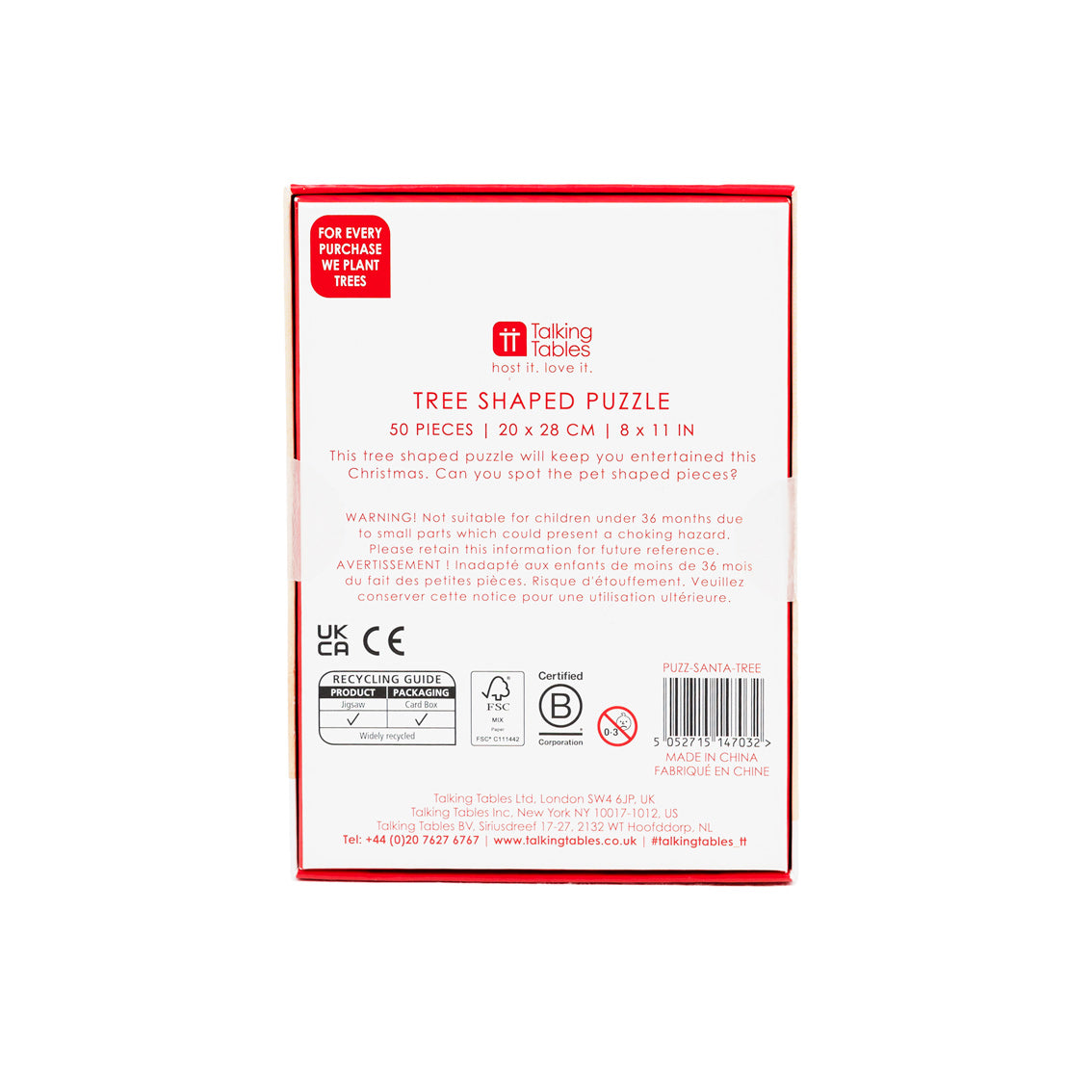 A 50-piece Christmas puzzle for kids’ entertainment, and great as a stocking filler or small gift. This Craft with Santa Christmas Tree Shaped Puzzle is for children aged three and up, perfect for keeping little ones entertained during the festive period. And, because we all care about the planet, it’s completely plastic-free, including the packaging.